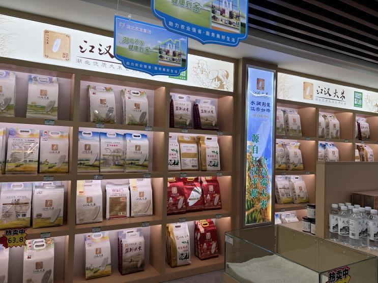 在运营模式上,展销中心采用“以展为主、展销结合”的思路,店内专门设置湖北农发集团品牌专区,集中展示展销集团旗下“楚小田”“楚花香”“中昌”“二度梅”“云鹤”“洪森”“楚辞”系列等上百款优质粮油精品。同时,中心还汇集了以中磐“王家粮仓”“秋慕思田”为代表的 “江汉大米”,以及“荆楚粮油”“湖北菜籽油” 等省域公用品牌系列产品,丰富的品类矩阵全方位满足消费者的健康饮食需求。