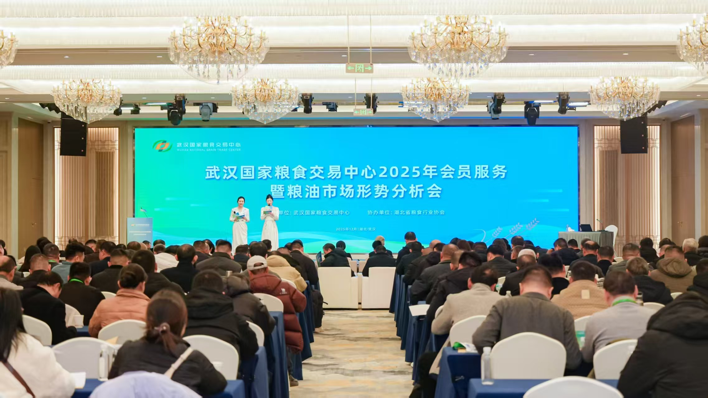 12月25日,武汉国家粮食交易中心2025年度会员服务大会暨粮油市场形势分析会在武汉举行。会议由武汉国家粮食交易中心主办、湖北省粮食行业协会协办,来自行业主管部门、粮油企业及金融机构的250余名代表参会,共商粮油市场形势,共话产业协作,共谋高质量发展。国家粮食和物资储备局粮食交易协调中心副主任王新,湖北省粮食局负责人出席会议并致辞。