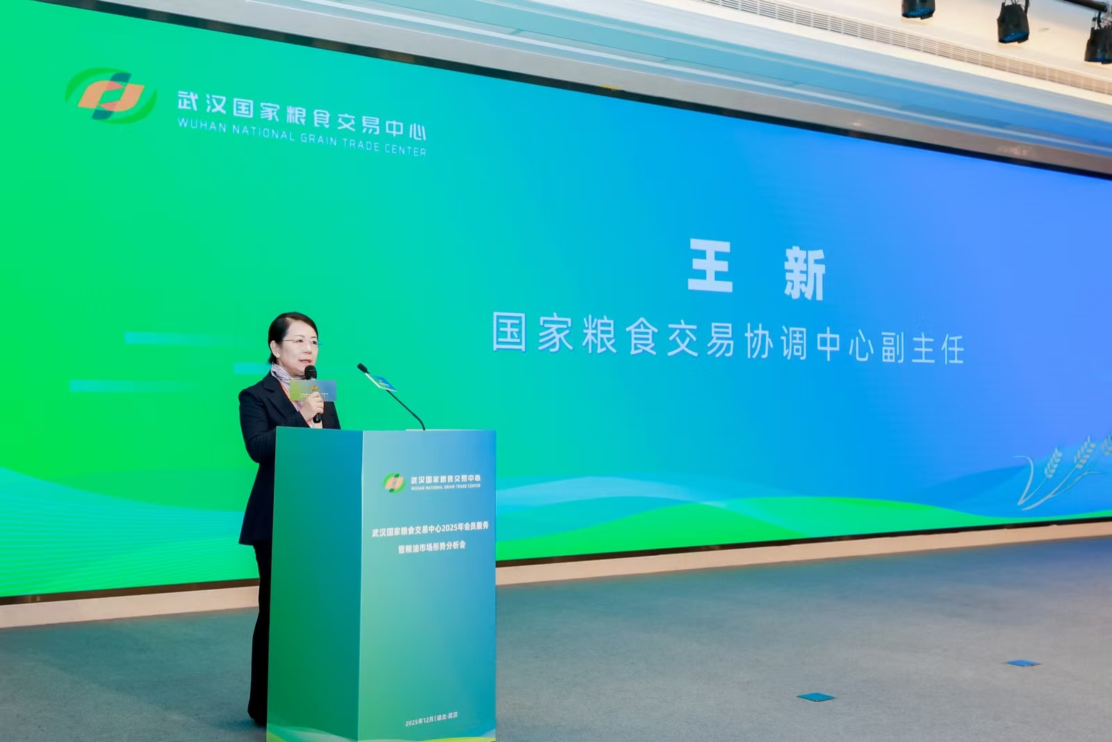 王新在致辞中阐释了国家粮食交易平台体系的战略定位与转型方向。她表示,国家中心正带领全国各省级交易中心加快从政策性交易平台向综合性粮食流通服务平台转型升级,重点拓展供应链金融、基差交易及贸易粮服务,以提升全产业链服务能力。她充分肯定武汉国家粮食交易中心依托区位优势,在落实政策、创新模式、促进区域流通等方面取得的显著成效,其探索实践为全国平台体系发展提供了宝贵经验。王新强调,构建全国统一的粮食交易平台体系需要国家与省级中心紧密协同、形成合力,共同服务粮食宏观调控大局,筑牢大国粮仓根基。