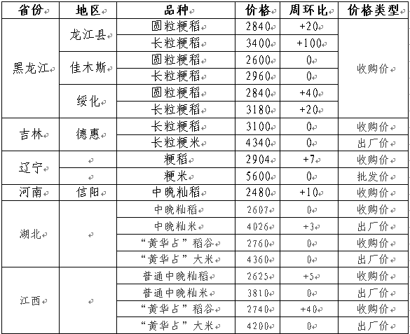近期国内部分地区稻米行情 单位:元/吨