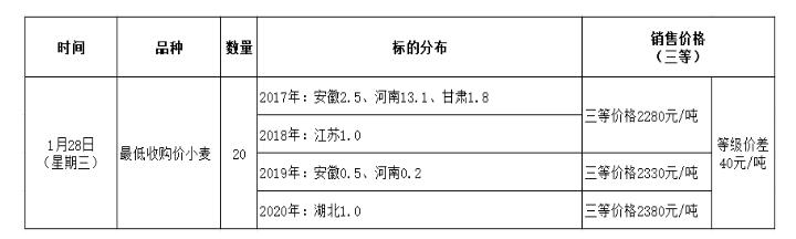 注:销售价格等级差40元/吨;本交易安排为预公告,交易日的实际销售数量以国家粮食交易中心官网发布的交易清单为准。