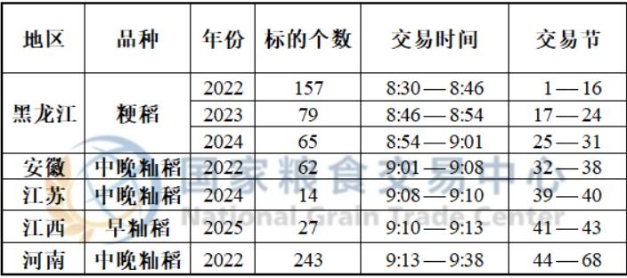 最低收购价稻谷于8:30开市交易,请提前登录“国家政策性粮油竞价销售”交易专场并关注标的,最新预估竞价交易时间如下: